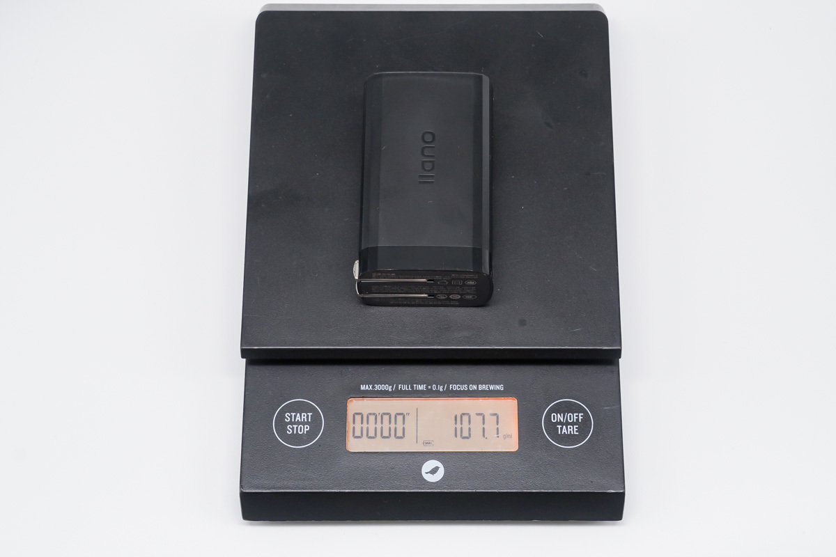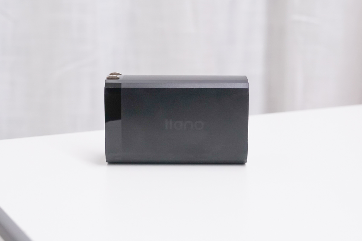llano綠巨能 65W氮化鎵充電器的外觀為常見的長條狀設計,邊緣處做了特殊的過渡處理,質感不錯。