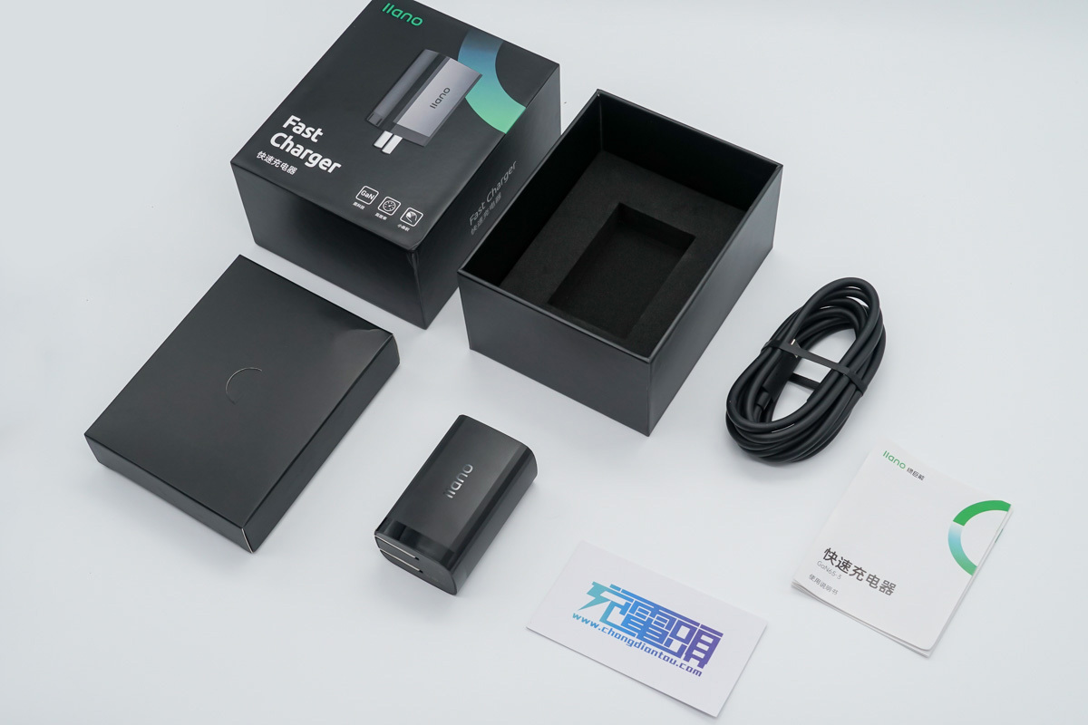 包裝盒內部產品一覽,產品本體、快充線以及使用說明書。
