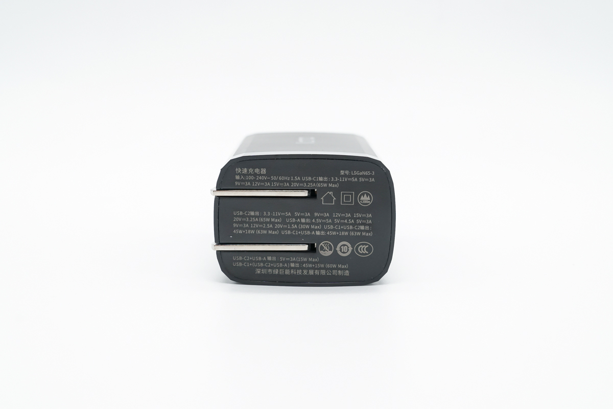 另一側的65W標識也說明了充電器的性能所在。
