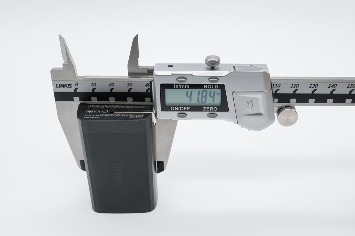 由此可以得出充電器的三圍參數為67.39x41.84x30.51mm,體積約為86.02cm3,以最高輸出65W計算,功率密度約為0.75W/cm3。