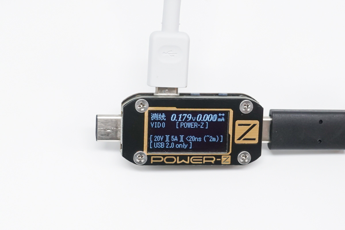 使用POWER-Z KM001C實測線材支持20V5A 100W的快充功率,此外還支持USB2.0的數據傳輸。