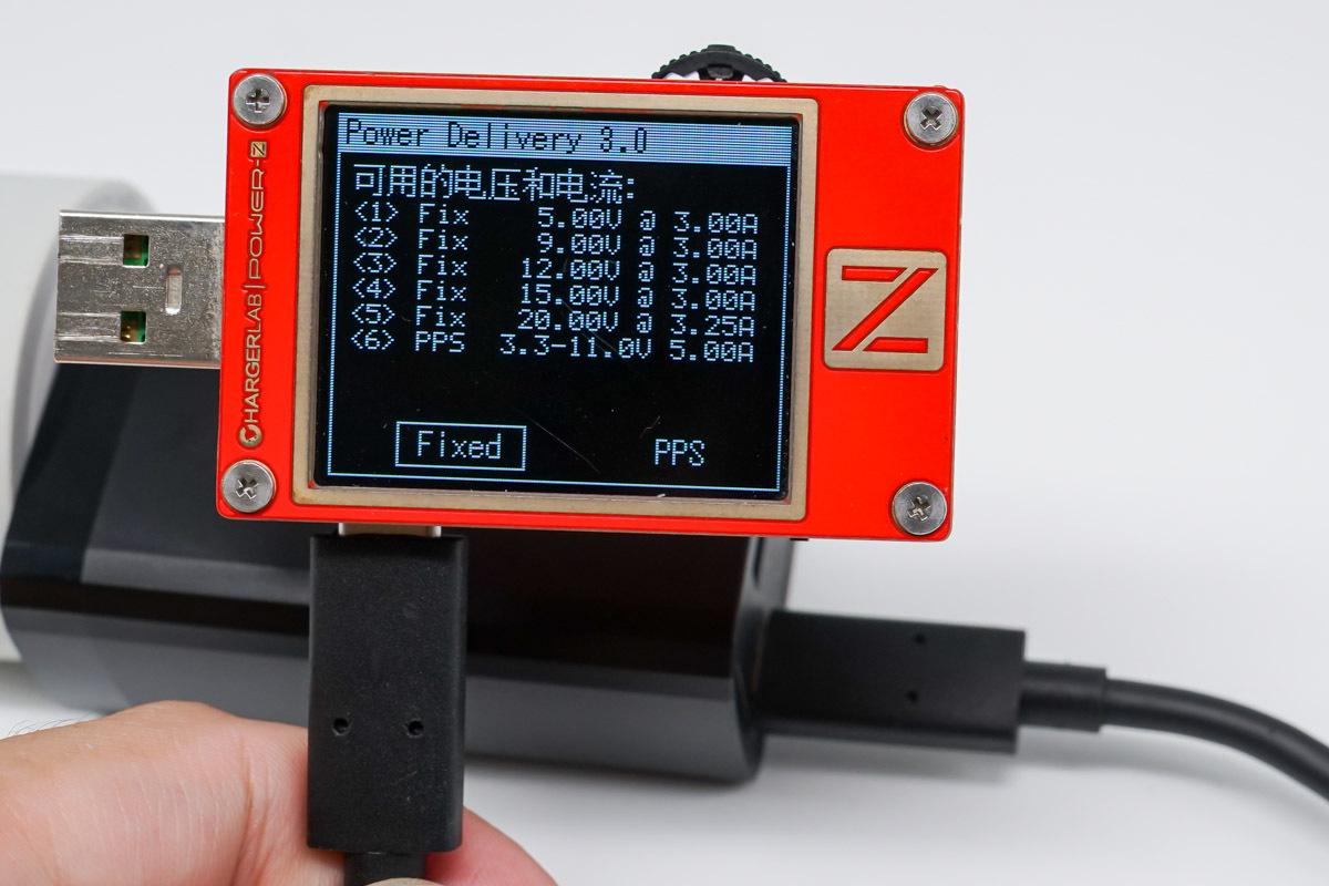 PDO報文這里顯示支持5-15V3A、20V3.25A五個固定電壓檔位,以及3.3-11V5A一組PPS快充檔位。