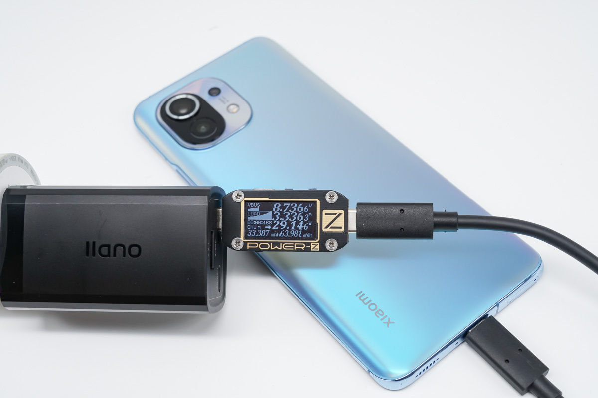 進入到實測環節,為小米11充電,功率為8.73V 3.33A 29.14W。