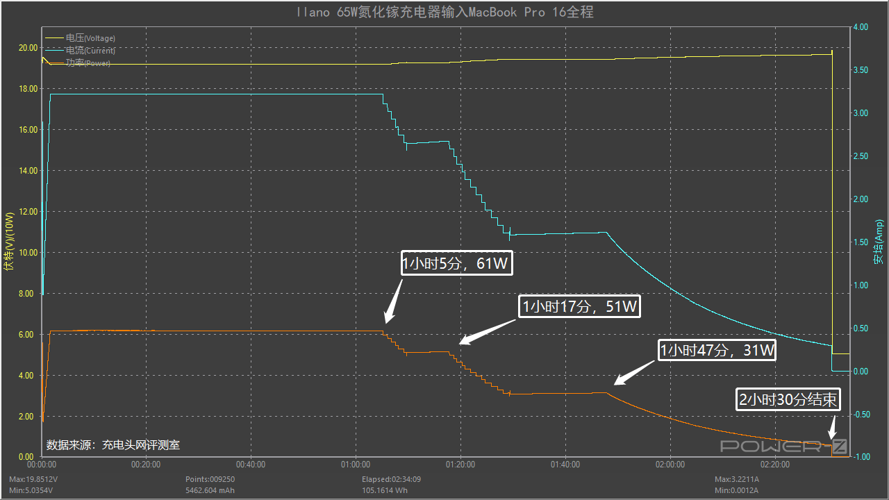 除了測試充電兼容性外,此次還增設了充電全程的測試數據,為了更好的發揮出充電器的性能,所以此次選擇了為MacBook Pro 16充電,以下是實測全程。