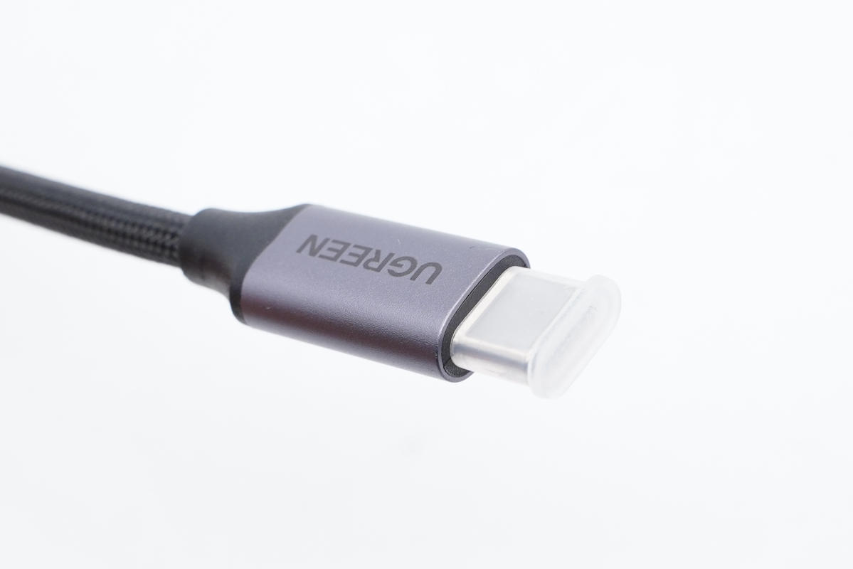 線頭采用鋁合金材質外殼,兩側圓潤,同時外殼表明噴砂以及印有UGREEN品牌logo。