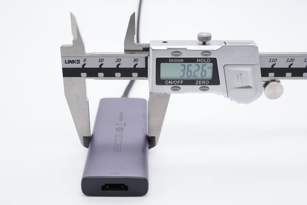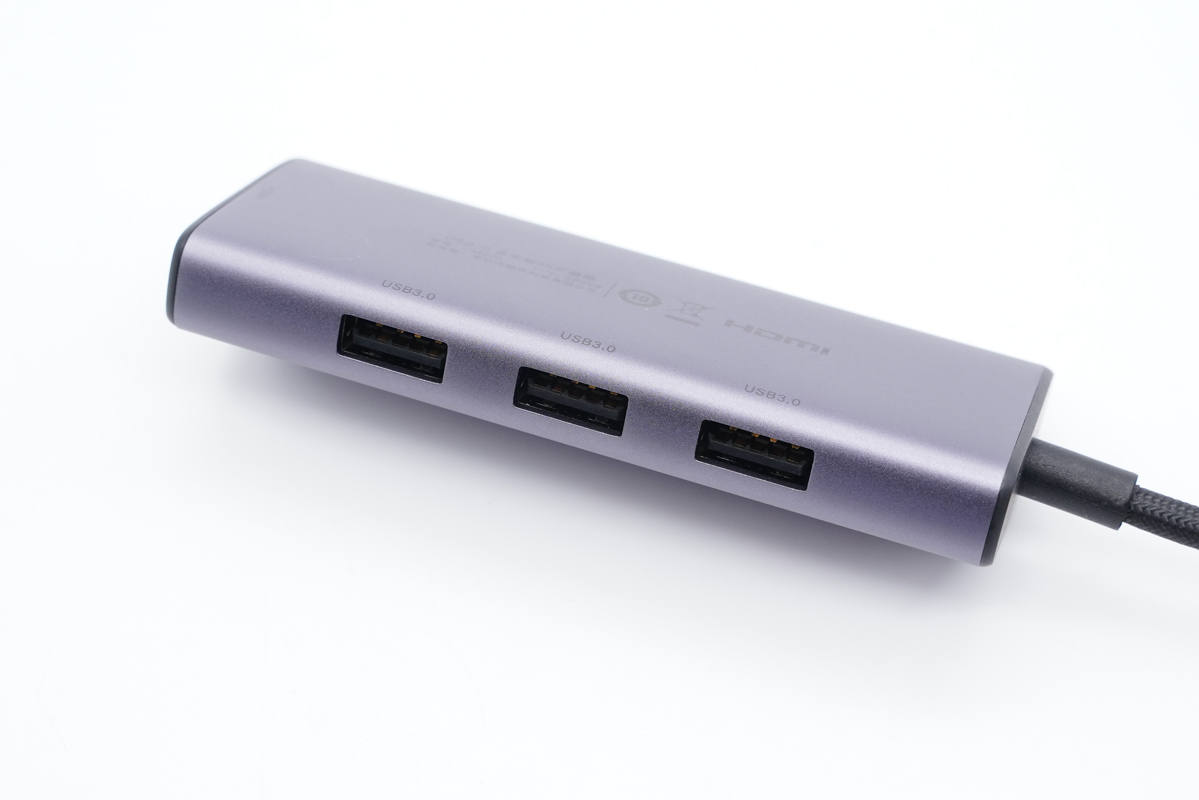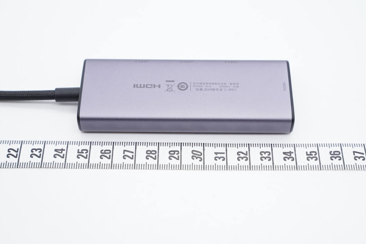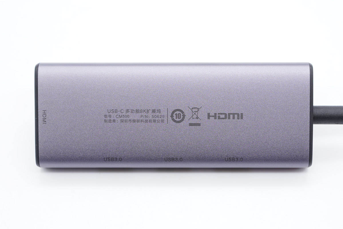 機身一端設有HDMI接口,支持8K視頻輸出,也就是這款拓展塢最大的特點所在。