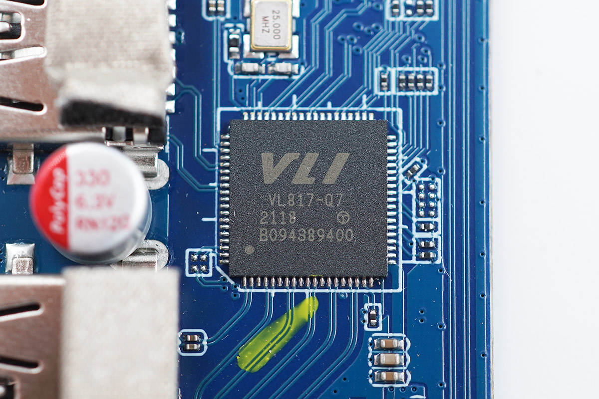威鋒電子VL817-Q7,這是一顆USB3.1G1 4口集線器芯片,用于USB接口擴展。