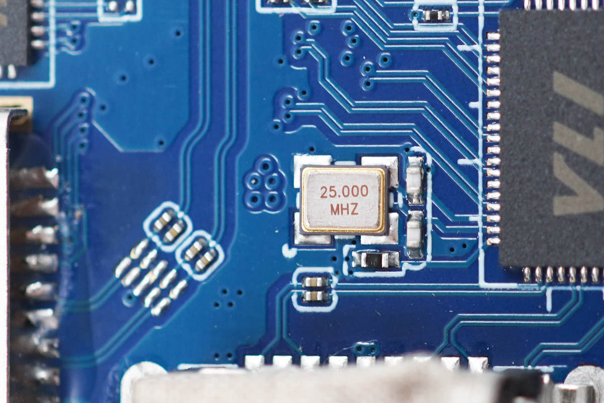25.000MHz無源晶振,為芯片提供時鐘。