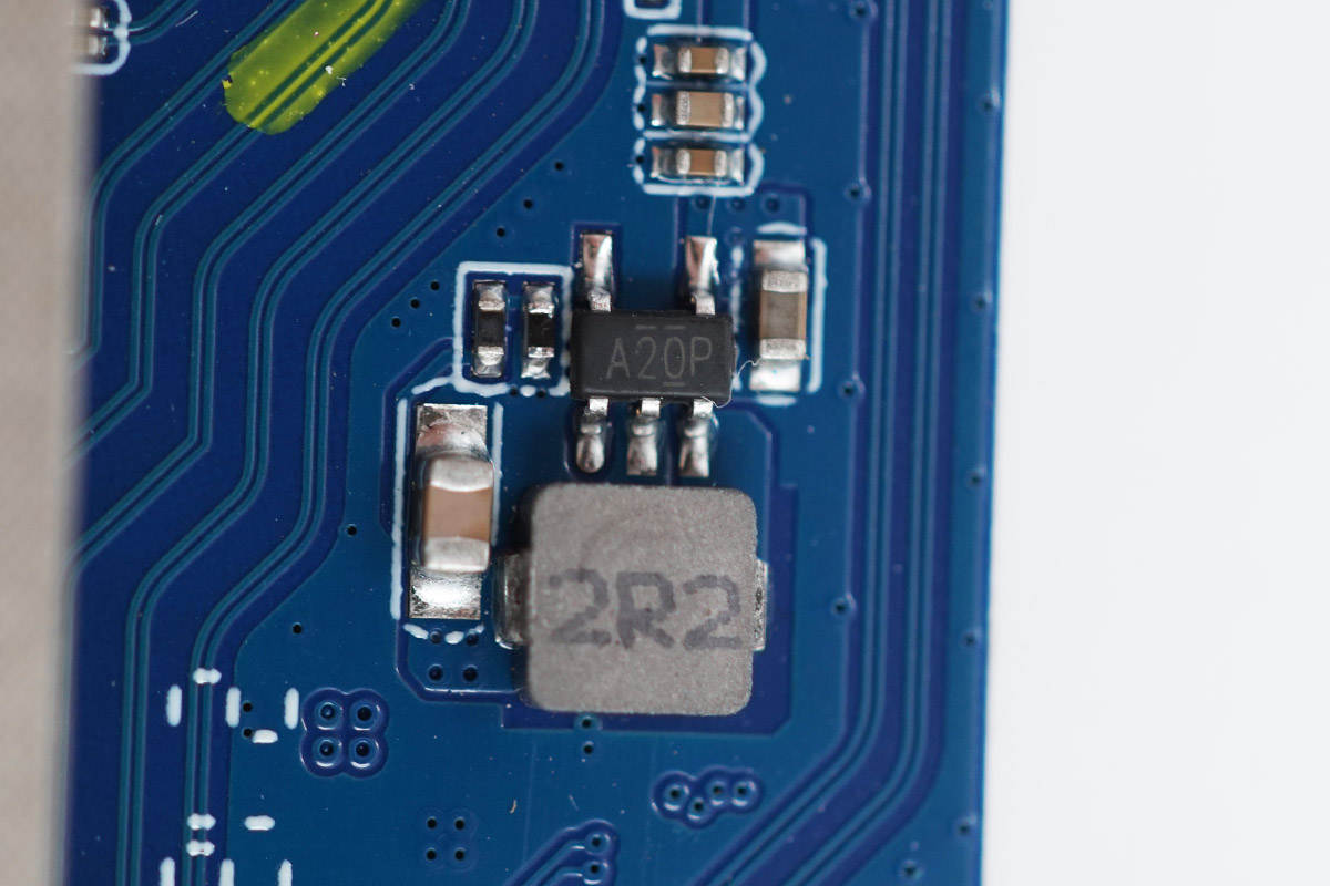 絲印A20P的芯片,旁邊是一顆2R2電感。