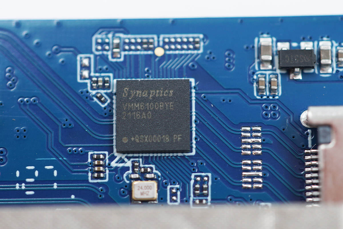 新思 VMM6100BYE的視頻轉換芯片,USB-C / DP HBR3接收器端口到HDMI2.1轉換器芯片,支持DSC1.2a解碼/直通輸出,支持HDCP2.3數字內容保護協議,支持安全固件更新,安全啟動,支持8K 60Hz或4K 120Hz輸出。