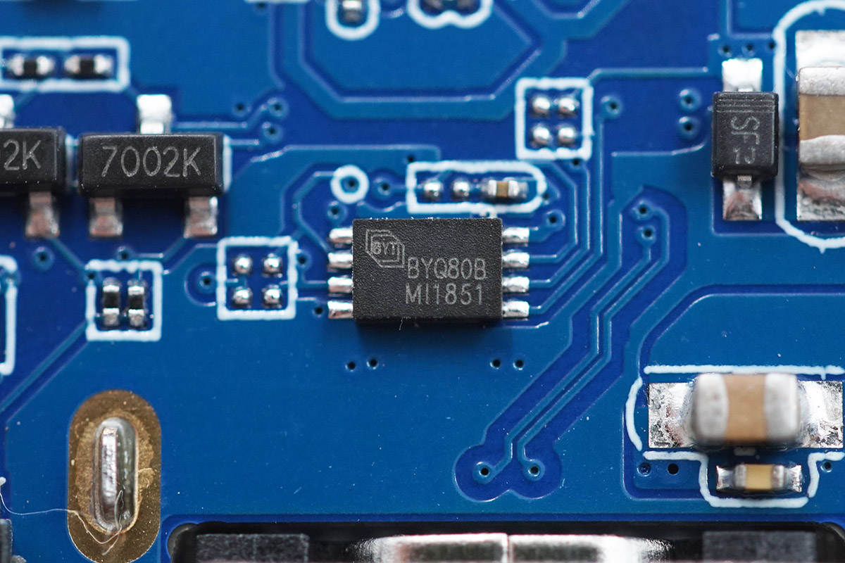板子正面比較顯眼的是三顆芯片,端口都貼有導電布接地。