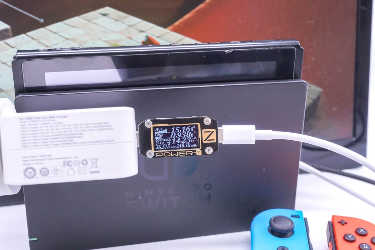 USB-C1支持15V3A快充,實測可以激活Switch的底座TV模式,充電器為底座輸出15V電壓。
