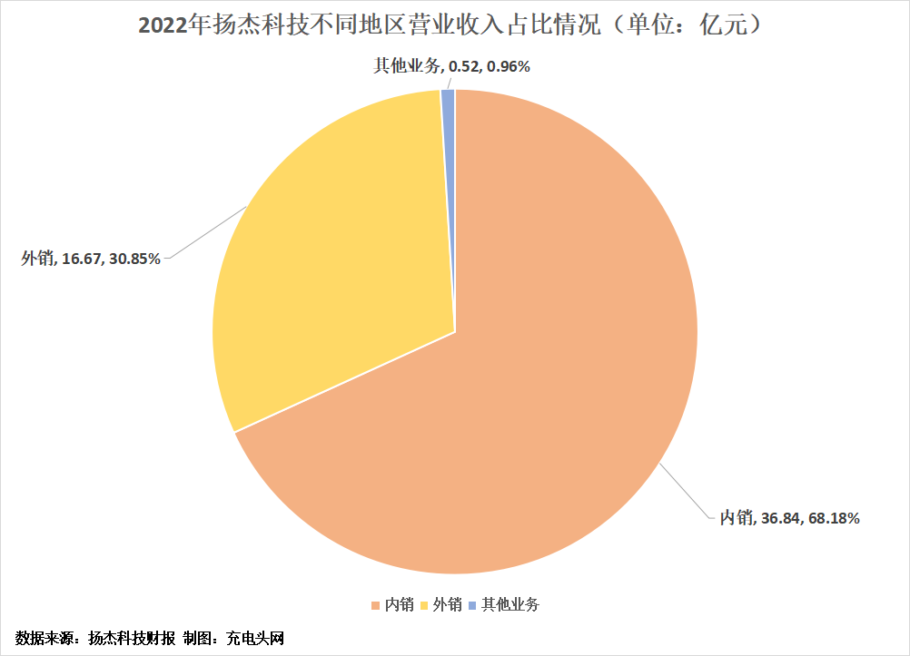 報(bào)告期內(nèi),揚(yáng)杰科技不同地區(qū)業(yè)務(wù)總體經(jīng)營(yíng)情況如上圖。2022年,揚(yáng)杰科技內(nèi)銷收入36.84億元,收入占比68.18%;外銷收入16.67億元,收入占比30.85%;其他營(yíng)業(yè)收入0.52億元,收入占比0.96%。