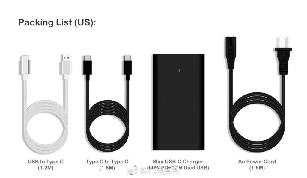 另外,充電器隨機附贈三條線材,一條1.2m的USB-A to USB Type-C線、一條1.5m的USB Type-C to USB Type-C線,還有一條1.5m的AC供電線。