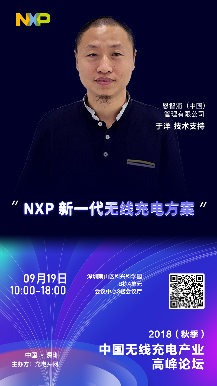 NXP恩智浦(中國)管理有限公司技術支持工程師,無線充電技術專家于洋,本次峰會的演講主題是《NXP 新一代無線充電方案》。