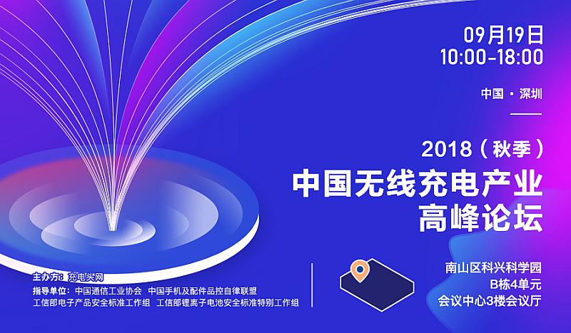 2018年9月19日,由充電頭網主辦的「2018(秋季)中國無線充電產業高峰論壇」將在科興科學園舉辦,這也是2018年蘋果秋季新品發布會之后的首場業界峰會。