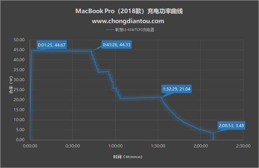 4、最高45W輸出,兩小時左右可充滿MacBook Pro 13寸 2018款。