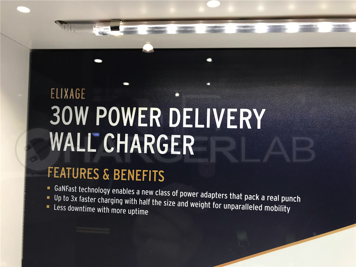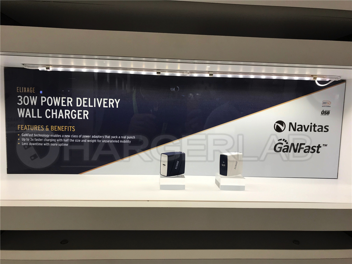 據ChargerLAB報道,美國手機配件品牌ELIXAGE在CES展會上展出了一款采用“GaNFast”技術的USB PD充電器。