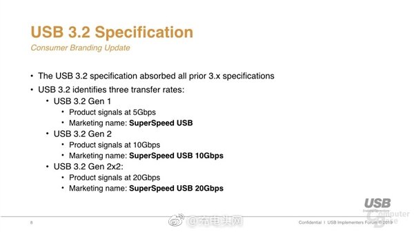 它們還各自有一個市場推廣命名,分別是SuperSpeed USB、SuperSpeed USB 10Gbps、SuperSpeed USB 20Gbps。
