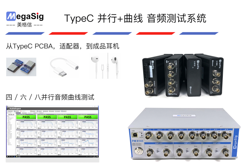 美格信的一拖四TypeC音頻曲線并行測試系統,穩定并批量地服務著手機的隨機配贈耳機的量產音頻測試,客戶群覆蓋國際幾個知名手機品牌商,有著如下幾個品牌的TypeC codec 音頻芯片的調試經驗,BES,Synaptics,Cirrus Logic等。