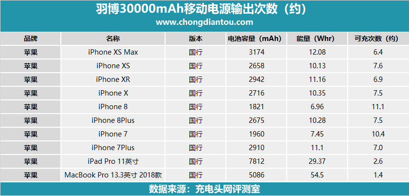 相信大家還是挺關心這款30000mAh大容量移動電源能給自己的手機充幾次電,小編幫大家算了算幾款熱門機型并做了一份表格,大家可以作為參考。