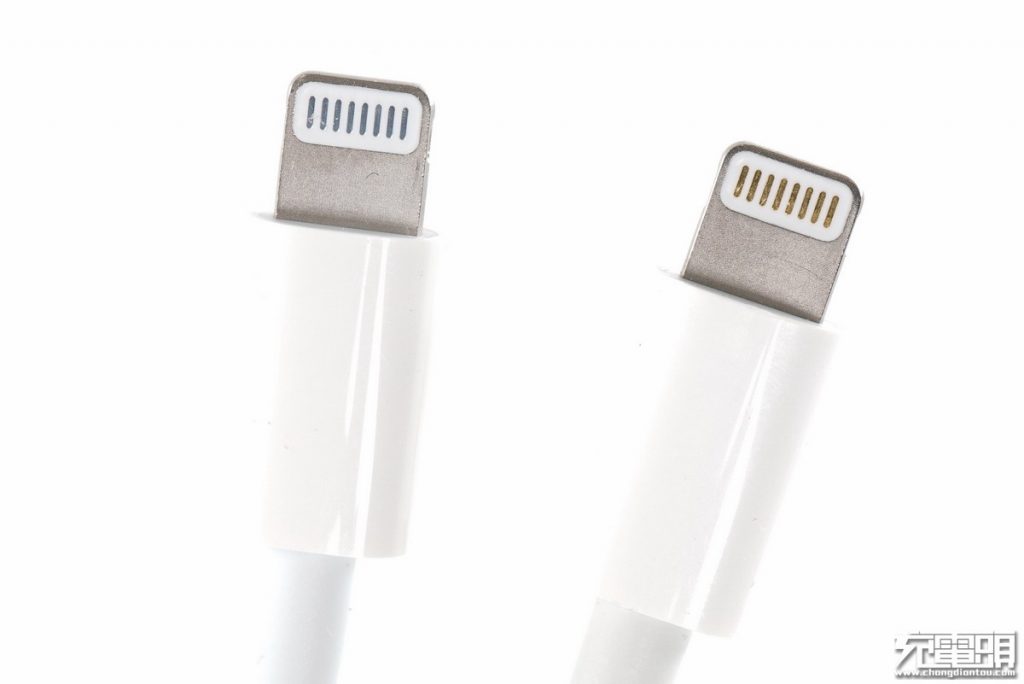 最近我們?cè)u(píng)測(cè)了幾乎所有已上市的C94數(shù)據(jù)線,再對(duì)比觀察了此前C91、C52數(shù)據(jù)線的評(píng)測(cè)稿,發(fā)現(xiàn)C94和C91的lightning頭觸點(diǎn)都是銀色的。不少粉絲都說(shuō)蘋(píng)果變了,從鍍金縮水(costdown)成鍍銀,感覺(jué)像是降低成本所為。