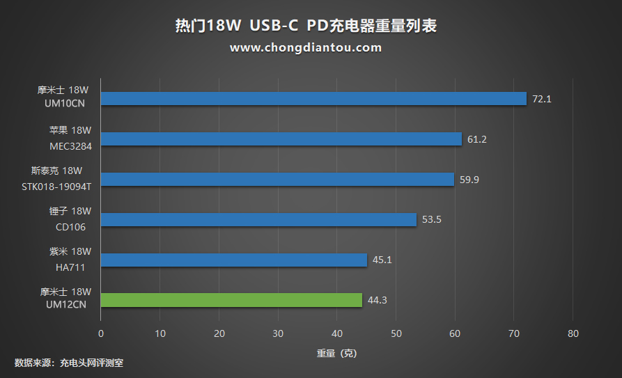 摩米士新款18W PD充電器在體積、重量上比舊款提升很多,更輕便易攜帶了。