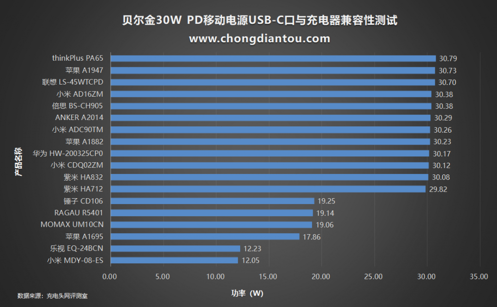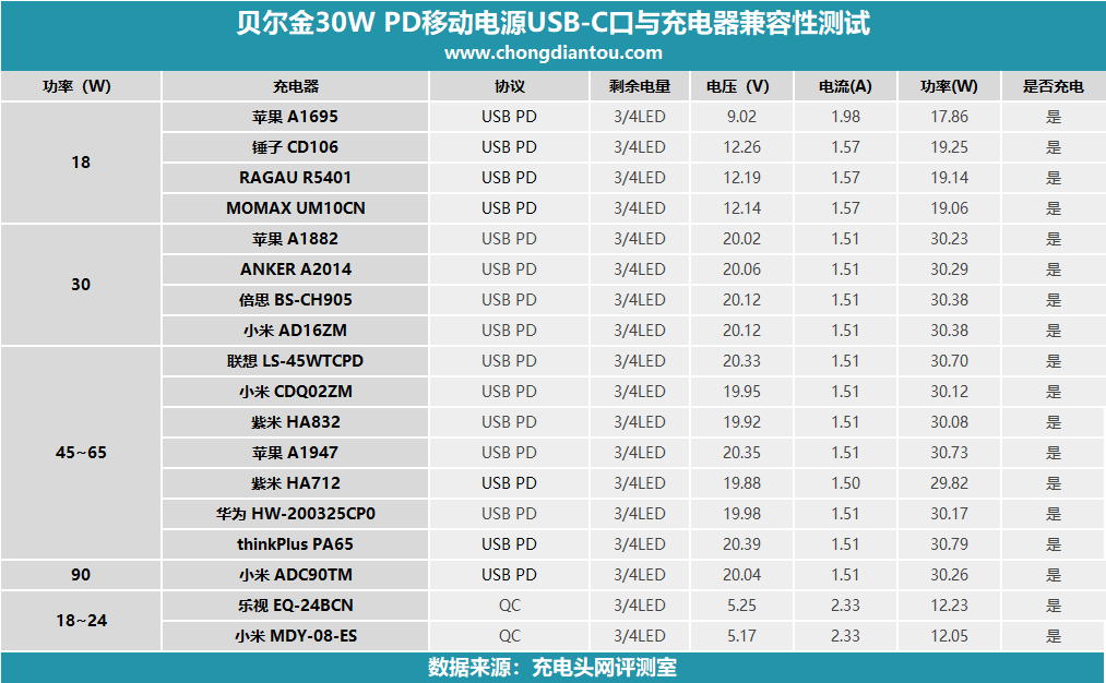 二、貝爾金30W PD移動電源測試