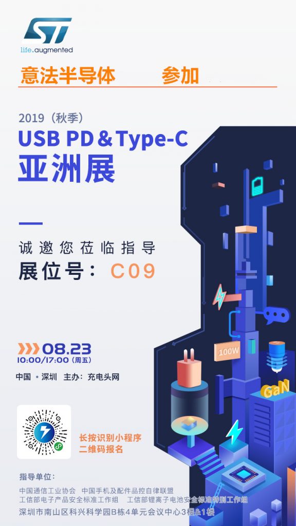 意法半導體將在8月23日參加2019(秋季) USB PD&Type-C亞洲展,展位設在C09,需要了解MCU方案的觀眾可在展會當天前往C09展臺進一步交流。