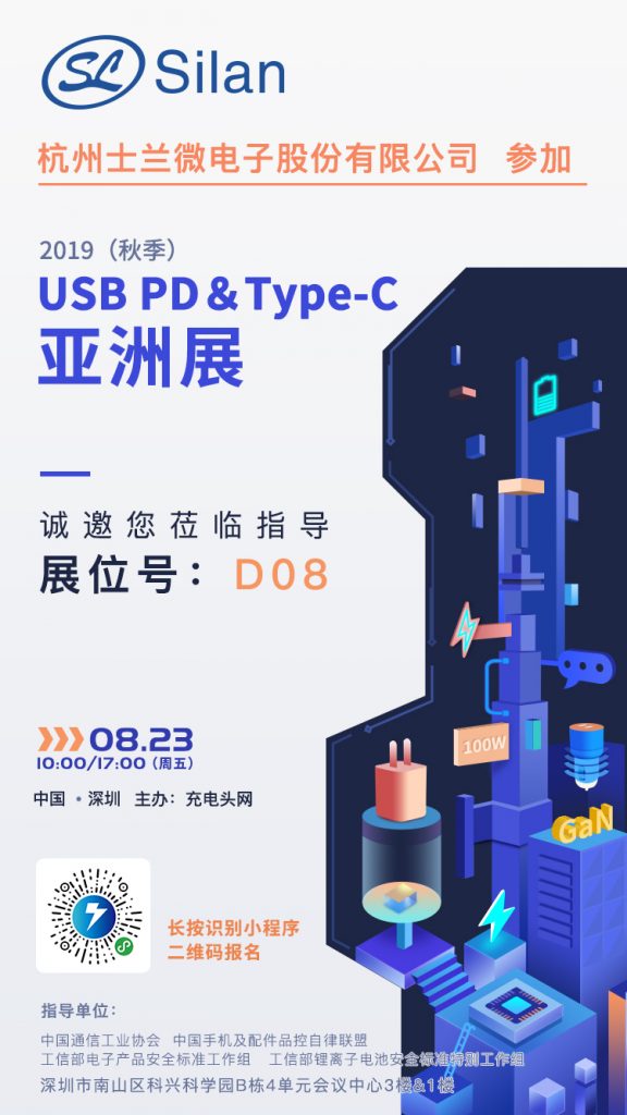 士蘭微電子將在8月23日參加2019(秋季)USB PD & Type-C 亞洲展,展位設在D08,屆時公司資深技術人員將在現場為客戶答疑解惑。熱誠歡迎新老客戶蒞臨士蘭微電子公司展位D08咨詢和洽談!