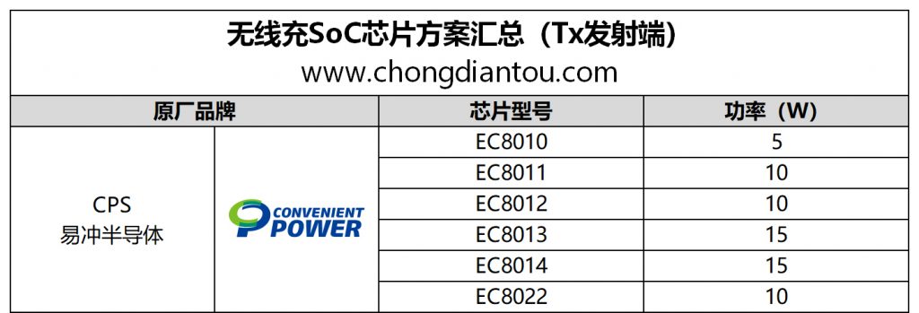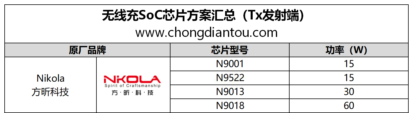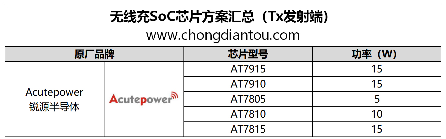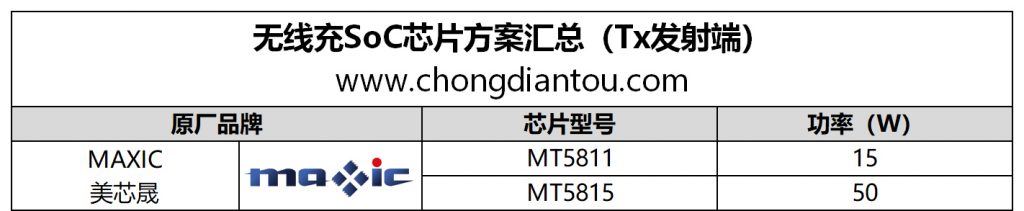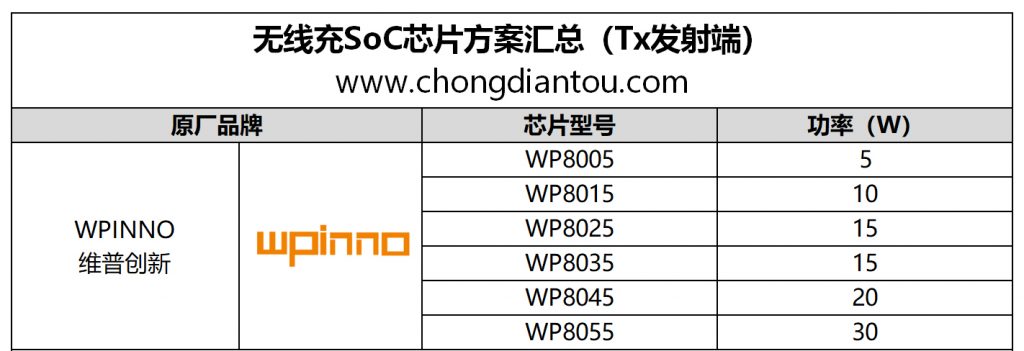 四、無線充SoC芯片方案及廠家的具體信息如下: