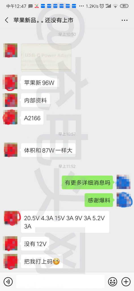 來(lái)自充電頭網(wǎng)的爆料顯示,蘋(píng)果最新款的大功率USB PD充電器揭曉,通過(guò)知情人士透露的信息了解到,這款充電器銘牌上標(biāo)稱(chēng)的功率為96W,型號(hào)A2166,體積和87W一樣大;輸出支持四個(gè)檔位,分別是5.2V 3A、9V 3A、15V 3A、20.5V 4.3A,沒(méi)有12V檔位。