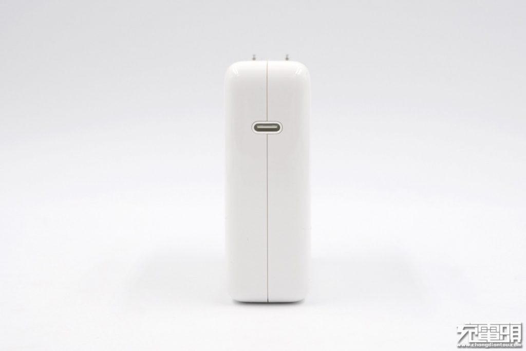 充電器外殼為兩瓣式設計而并非此前29W的一體式機身,重量約106.3g,很有份量的充電器。