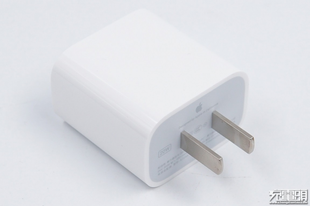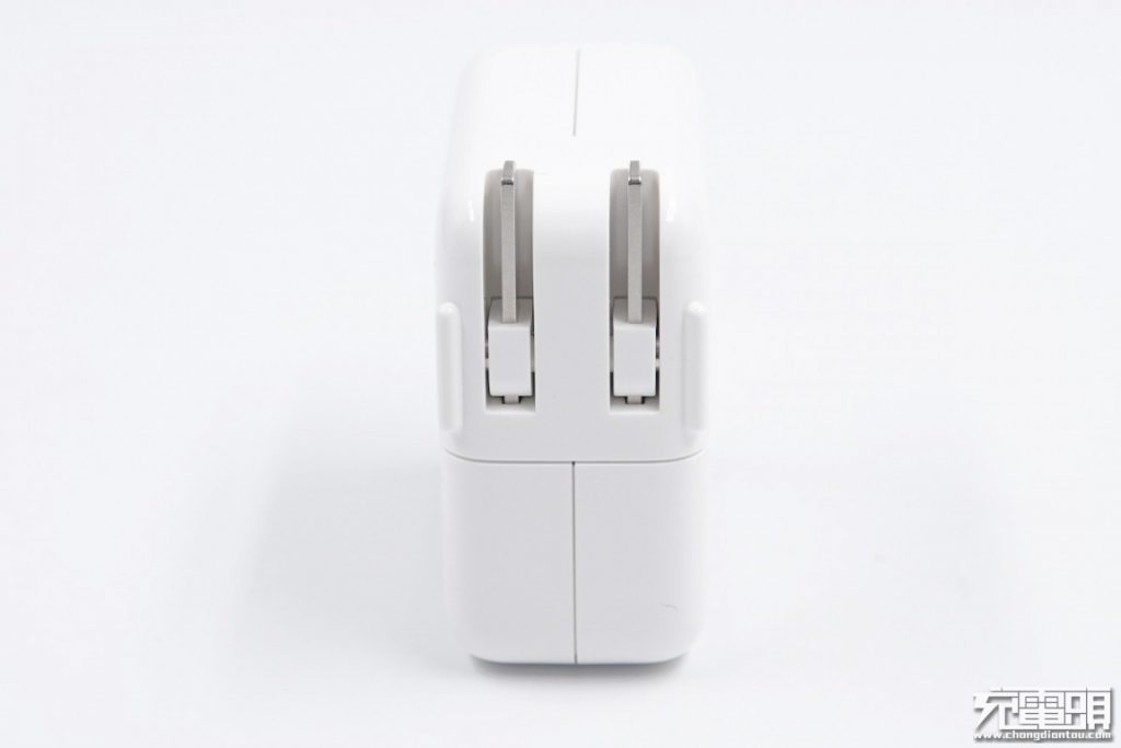 在外觀方面,還是一如既往的蘋果風格。光滑的白色聚碳酸酯外殼,正反兩面雕有蘋果的LOGO。采用折疊插腳,可拆卸插腳設計,可以很方便的更換不同規格的插腳,如美規、歐規、英規等,出國旅游、出差很方便。