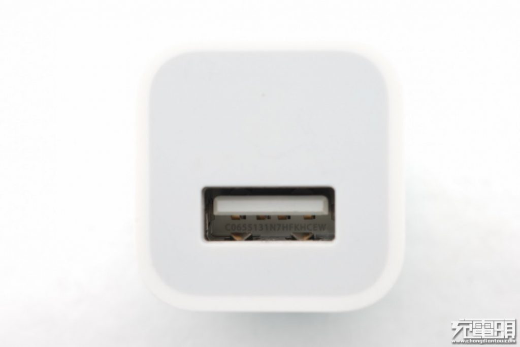 標配的USB-A輸出接口,支持APPLE2.1A快充。接口內部印有產品序列號。在不帶插腳的情況下,機身的凈重約為49g。