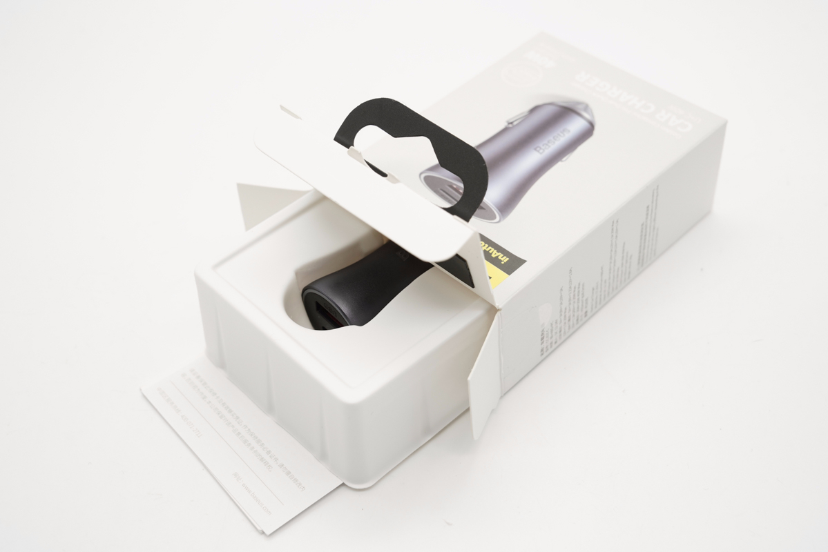 打開包裝,內部使用塑料托盤對車充進行固定和保護。