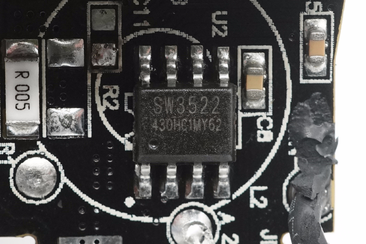 智融SW3522負責USB-C接口的降壓控制和協議識別,這是一款高集成度的多快充協議充電芯片,其集成了 3.5A 高效率同步降壓變換器,支持PPS、PD、QC、AFC、FCP、SFCP等多種快充協議以及CC/CV模式。外圍僅需少量的器件,即可組成完整的高性能多快充協議充電解決方案。