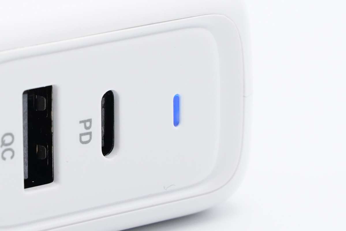 充電器采用PC阻燃材質(zhì)白色外殼,表面全部磨砂處理,機(jī)身邊角過(guò)渡圓潤(rùn),整體體積非常小同時(shí)設(shè)計(jì)十分簡(jiǎn)潔。