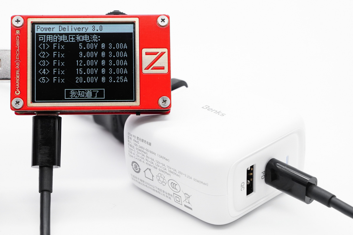 此外PDO報(bào)文顯示USB-C口還具備5V3A、9V3A、12V3A、15V3A、20V3.25A五組固定電壓檔位。
