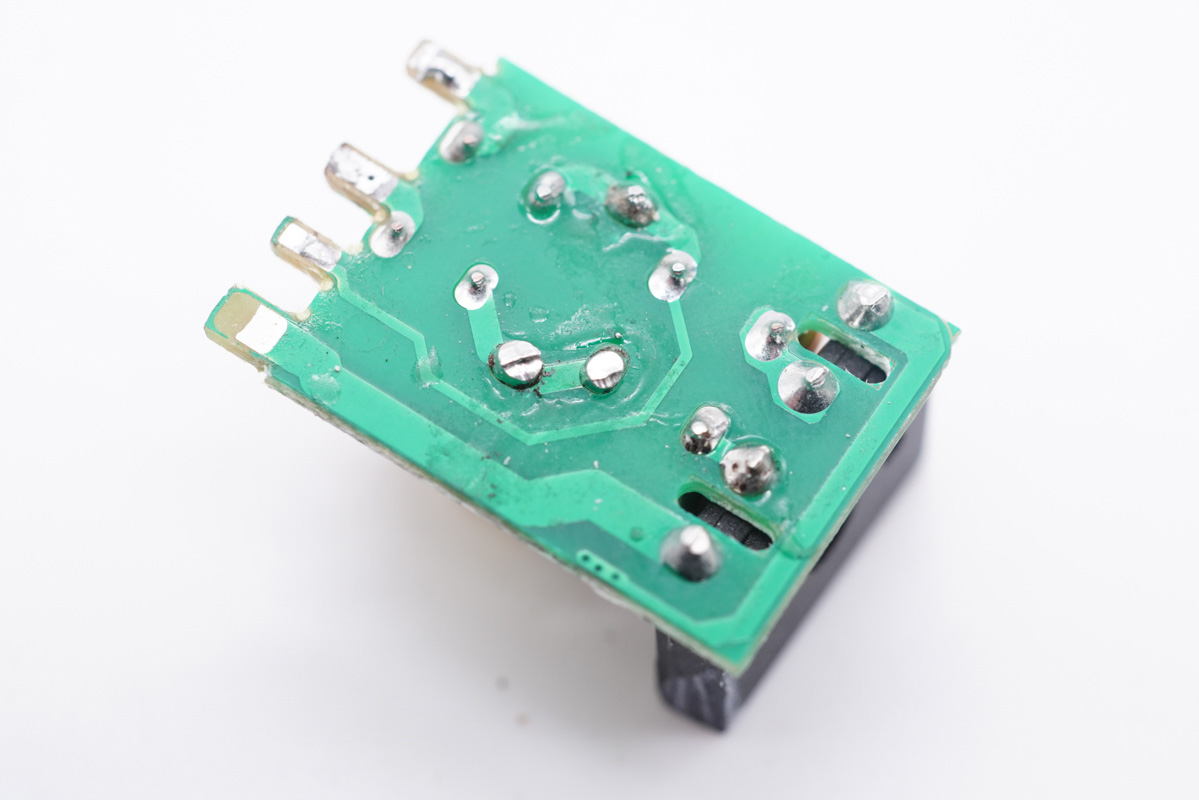 插腳和PCB板通過(guò)紅黑導(dǎo)線連接通電,此外設(shè)有塑料板和電容隔離。