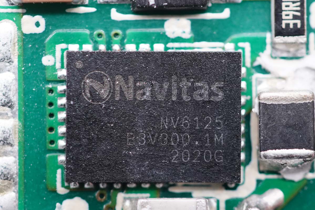 初級(jí)側(cè)氮化鎵功率芯片采用納微NV6125,內(nèi)置驅(qū)動(dòng)器,無(wú)需外置驅(qū)動(dòng)器,175mΩ導(dǎo)阻,耐壓650V,支持2MHz開(kāi)關(guān)頻率,采用散熱增強(qiáng)的QFN6*8mm封裝,適用于升壓,降壓,半橋,全橋開(kāi)關(guān)電源等諸多應(yīng)用場(chǎng)合。