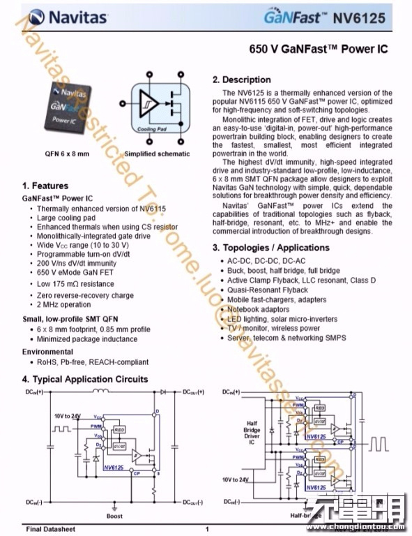 納微半導(dǎo)體NV6125詳細(xì)資料。