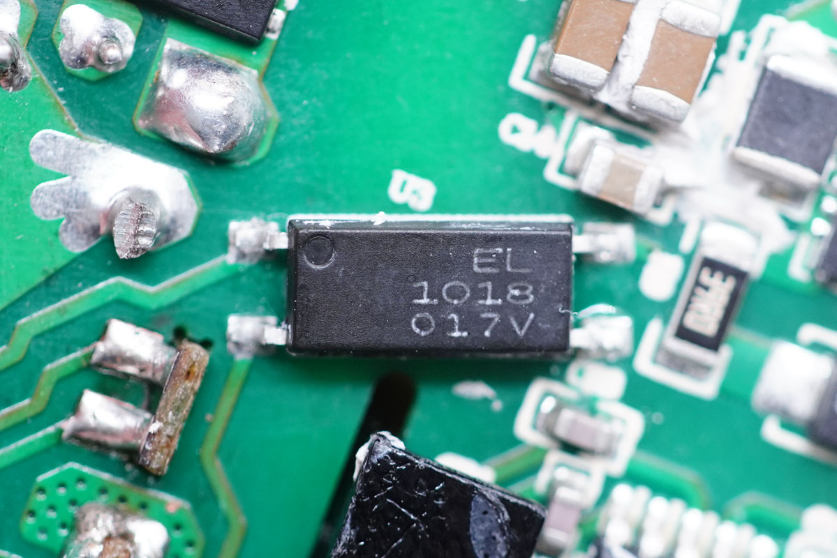 億光EL 1018光耦,橫跨在初級(jí)和次級(jí)之間,用于初級(jí)次級(jí)通信,反饋輸出電壓。