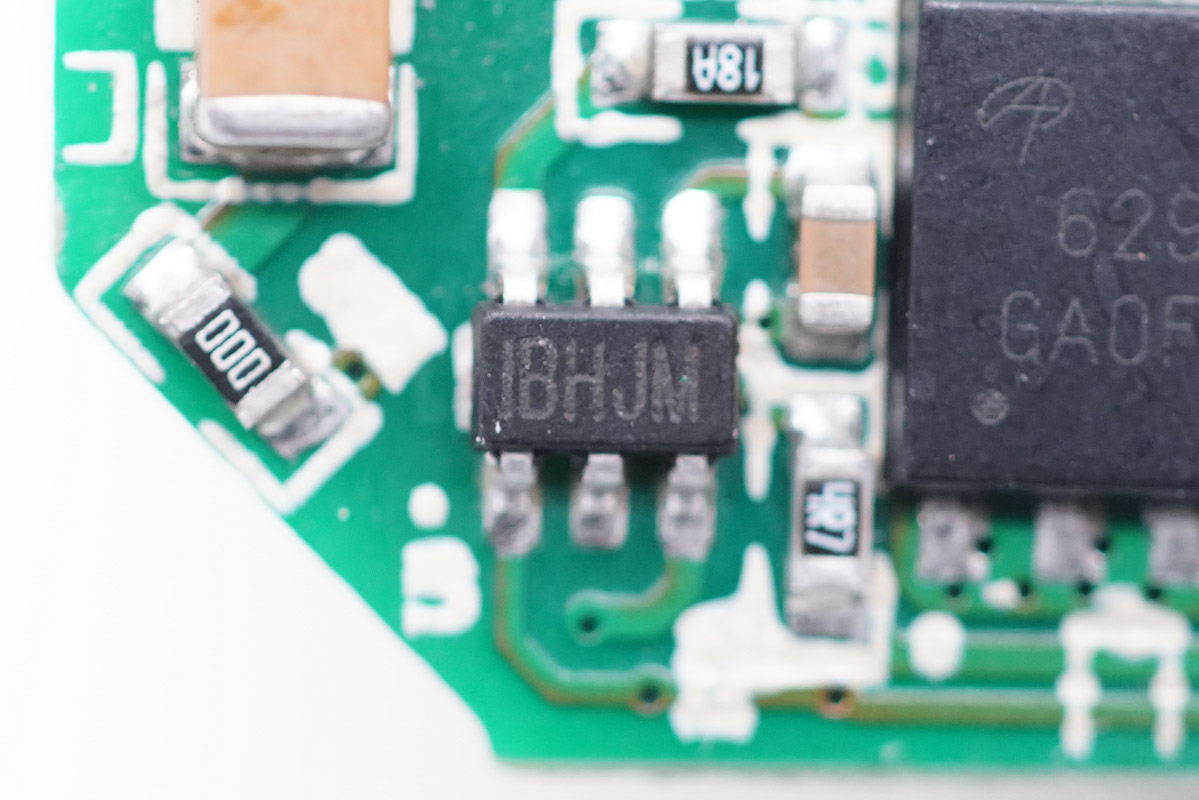 絲印IBHJM次級(jí)同步整流控制器,實(shí)際型號(hào)為MP6908A,來(lái)自MPS芯源半導(dǎo)體,最高工作頻率600KHz,支持DCM,CCM和QR以及ACF工作模式,支持標(biāo)準(zhǔn)電壓和邏輯電壓驅(qū)動(dòng)的同步整流管。
