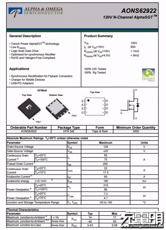 AOS AON62922詳細(xì)規(guī)格資料。