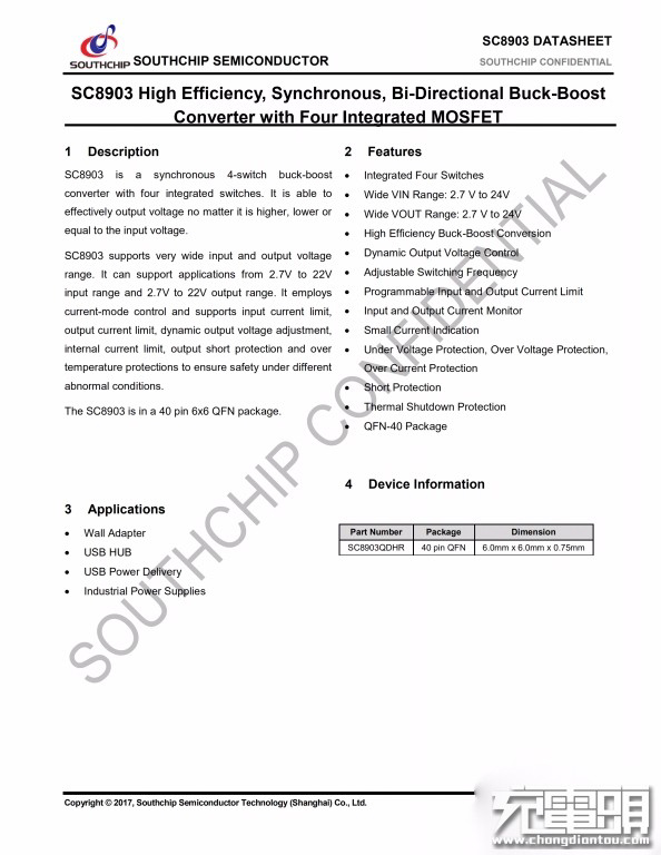 南芯SC8903規(guī)格資料。充電頭網(wǎng)了解到,南芯SC8903此前已被Anker PowerCore Fusion PD超級(jí)充MOMAX 66W USB PD充電器等產(chǎn)品采用。