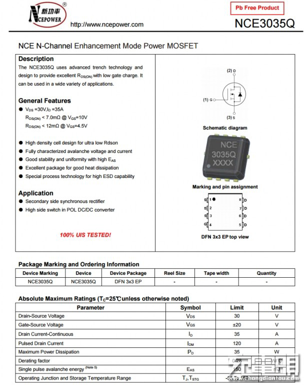 新功率NCE3035Q資料信息。