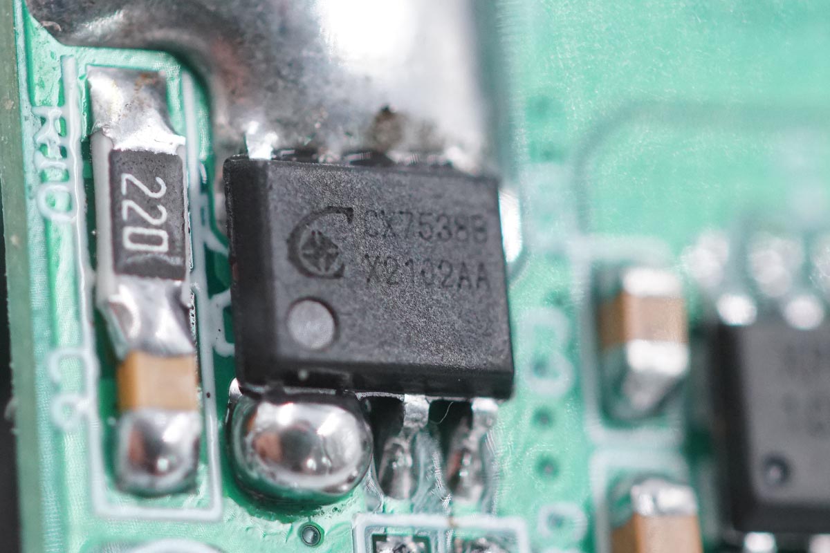 適配器次級采用內部集成同步整流管的多模式同步整流器CX7538B,其內部集成60V耐壓,導阻12mΩ的同步整流管,支持CCM/QR/DCM工作模式,最高支持200KHz工作頻率,靜態電流低,相比傳統肖特基整流方式可提高2-6%效率,支持3A輸出電流。