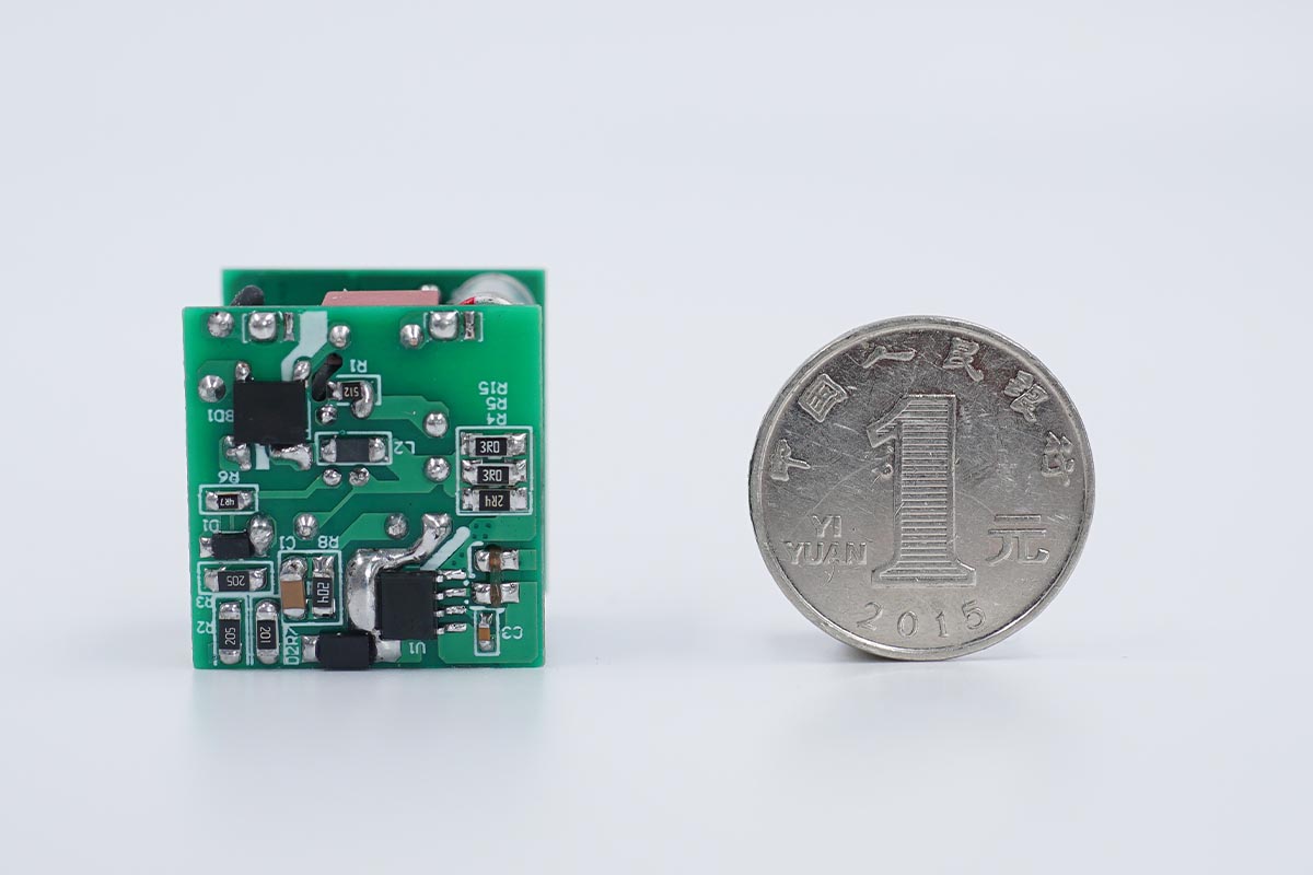 誠芯微25W Demo裸板寬度與1元硬幣直徑相當。