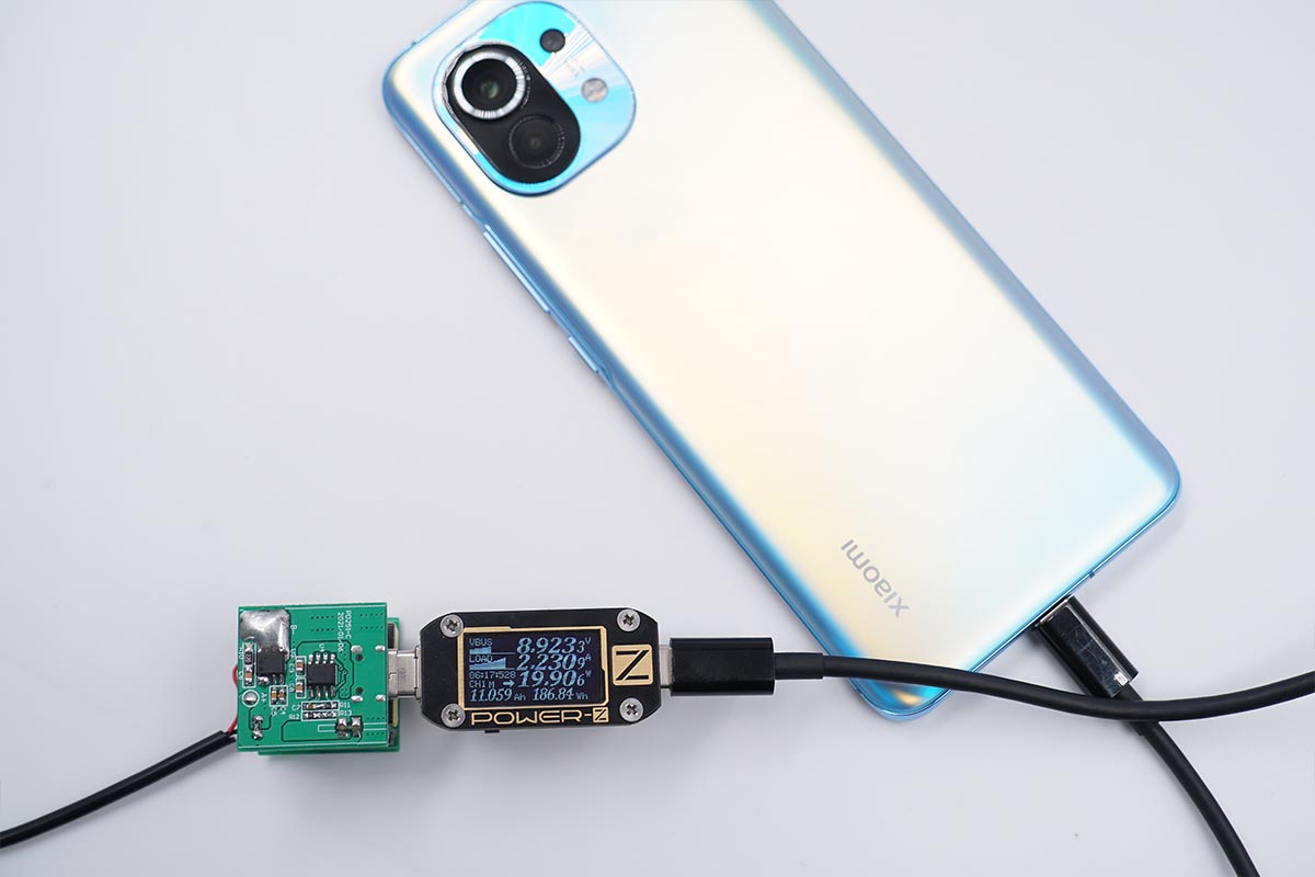 為小米11手機充電,電壓8.92V,電流2.23A,充電功率約為19.9W,進入USB PD快充。